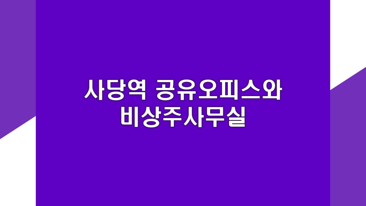 사당역 근처의 공유오피스, 비상주사무실, 소호사무실은 모두 각기 다른 장점을 가지고 있음. 개인의 필요에 따라 최적의 사무 공간을 선택하는 게 중요함. 다양한 옵션 덕분에 선택의 폭이 넓음. 앞으로 창업하거나 비즈니스 확장을 고려하고 있다면 이런 공간들을 꼭 살펴보길 바람.종합적으로, 가성비 좋은 선택지가 많음.